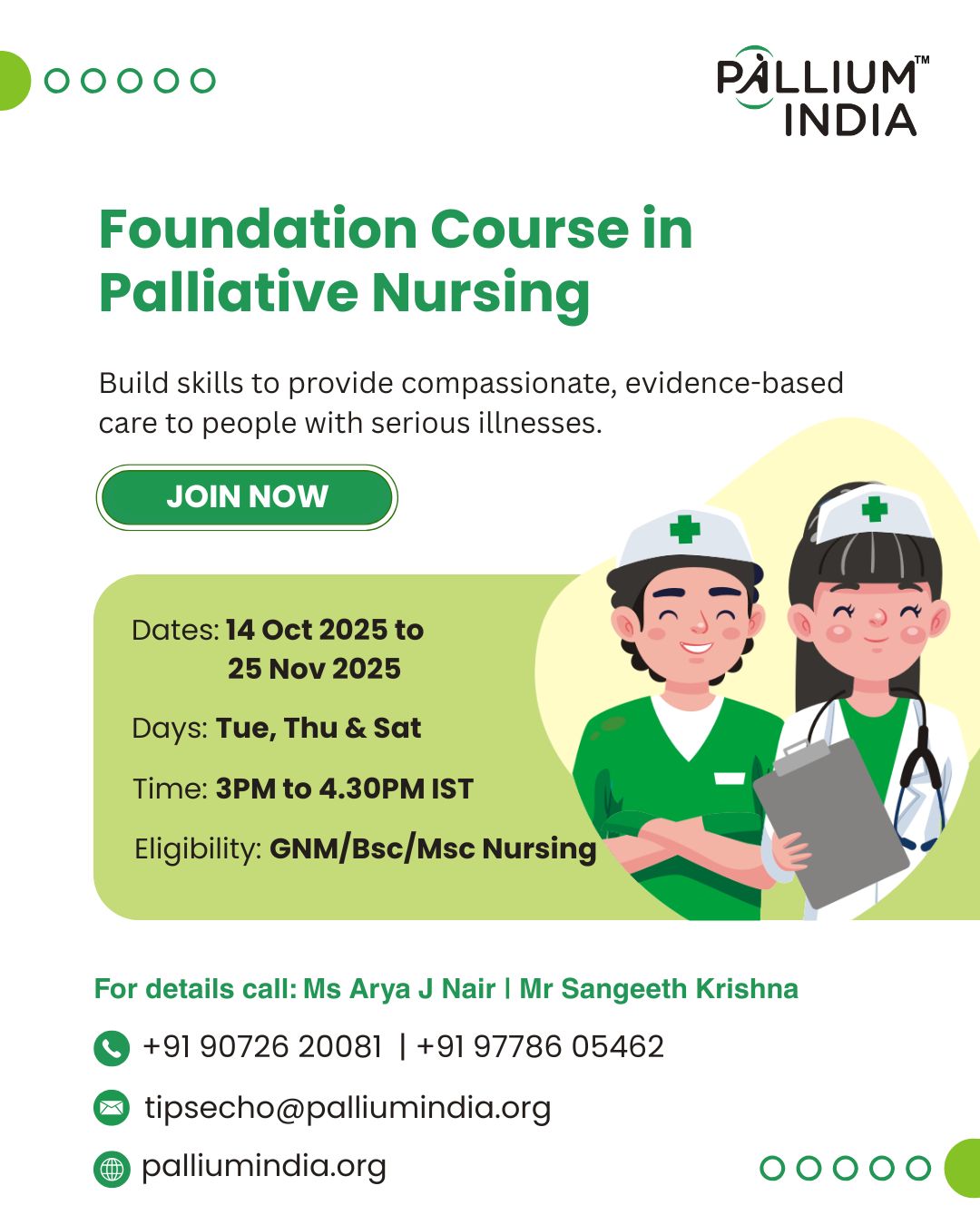 For more information on this course or for any assistance, please call 91-90726 20081 or write to us: tipsecho@palliumindia.org