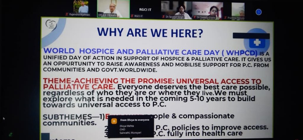 At the Cancer Research Institute (CRI), Swami Rama Himalayan University, Regional Facilitator, Rajendra Dutt Bijalwan participated in celebrations inaugurated by Dr. Sunil Saini, Director of CRI, and Dr. Abhishek Kandwal, Deputy Director. He also engaged in an online webinar organized by Ganga Prem Hospice in collaboration with NHM Uttarakhand, fostering meaningful discussions on strengthening palliative care in both academic and clinical settings.