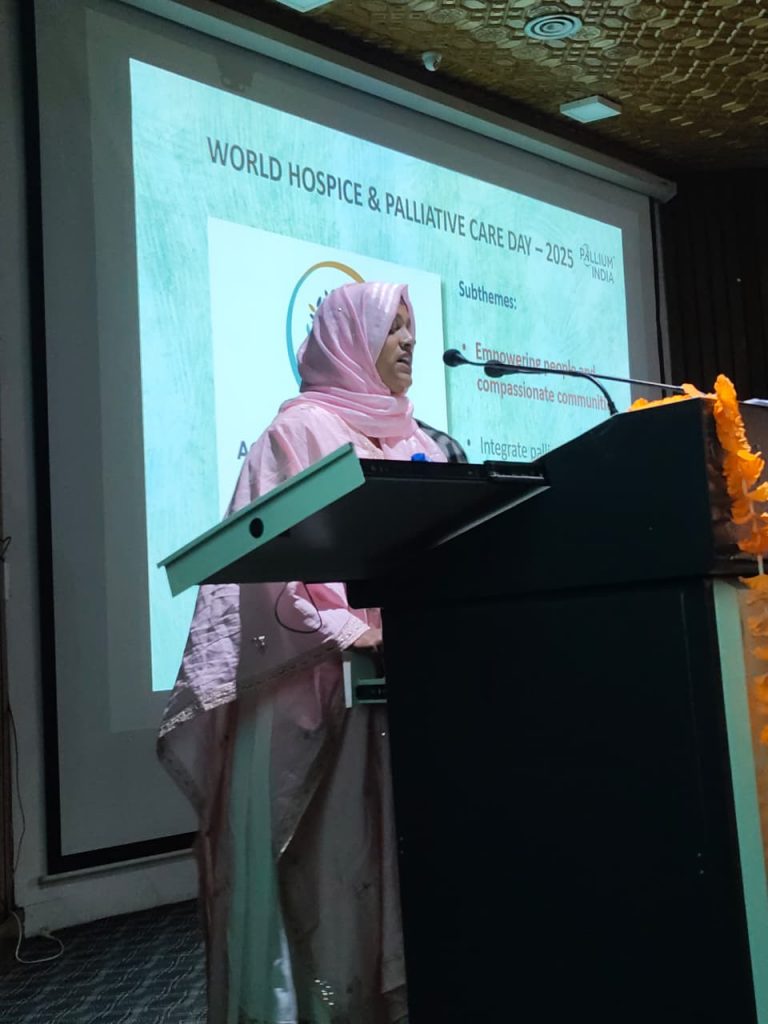 The scientific program featured expert talks on clinical, psychosocial, and community-based palliative care. Dr. Hashmath Farhana from Pallium India presented on home-based palliative care, sharing insights into delivering compassionate care where it matters most. Dr. Arjun Devarajan, also from Pallium India, spoke on mitigating serious health-related suffering in India, emphasizing the Total Pain model, challenges in access and opioid availability, and the importance of early integration of palliative care in tertiary settings.