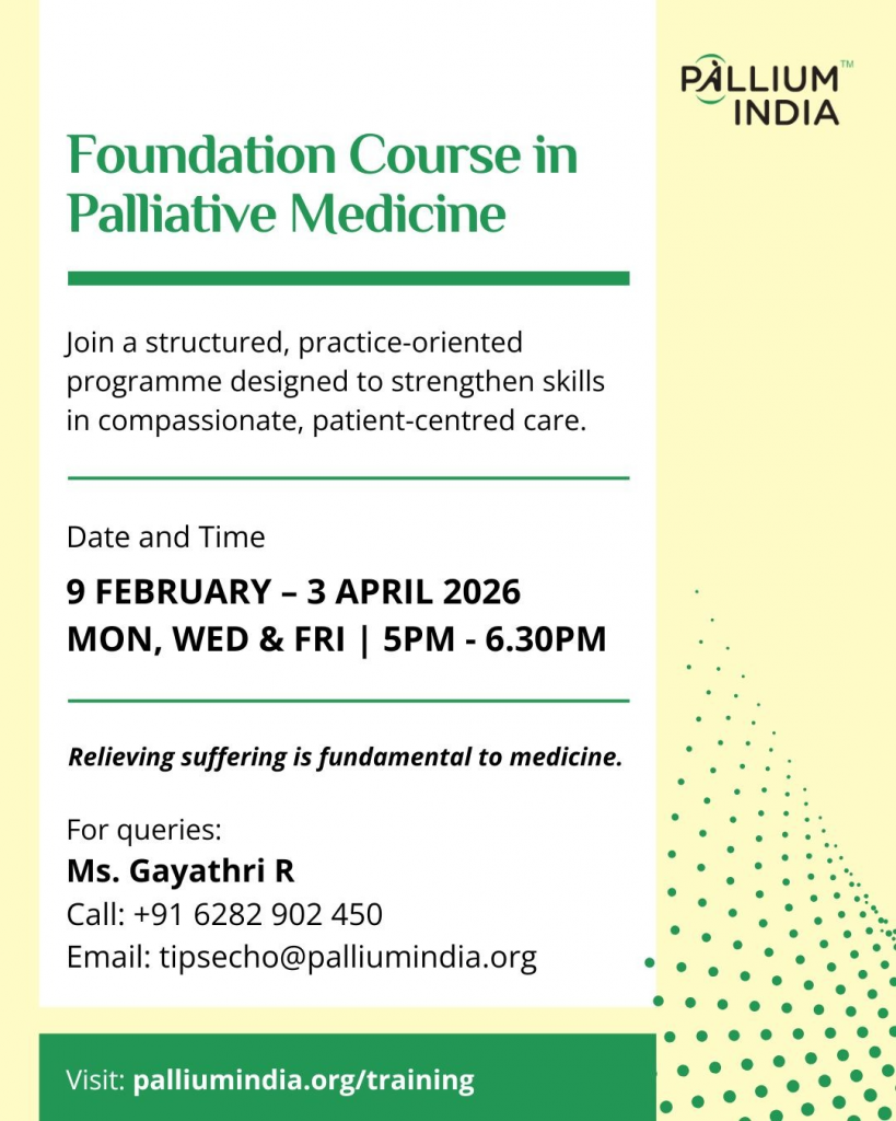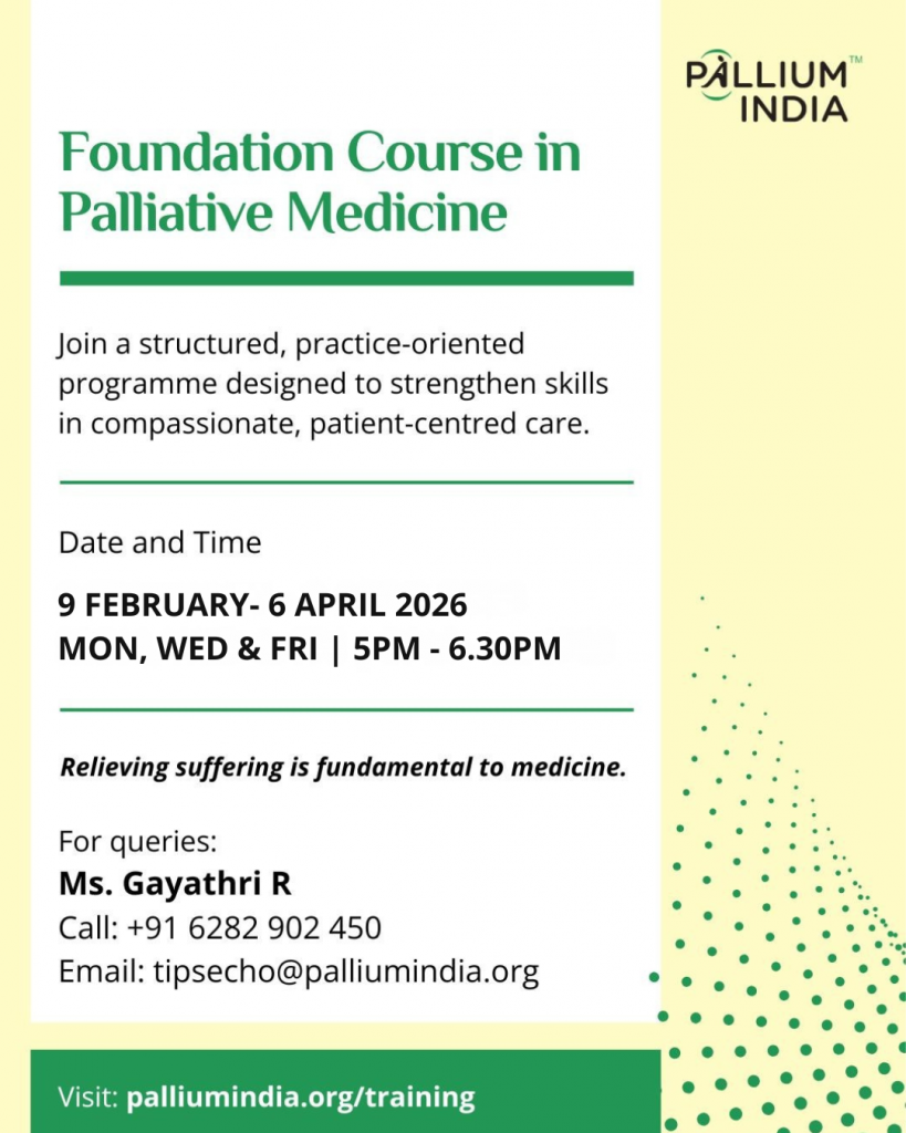 For more information on this course or for any assistance, please call us at +91 97786 05462 or write to us: tipsecho@palliumindia.org