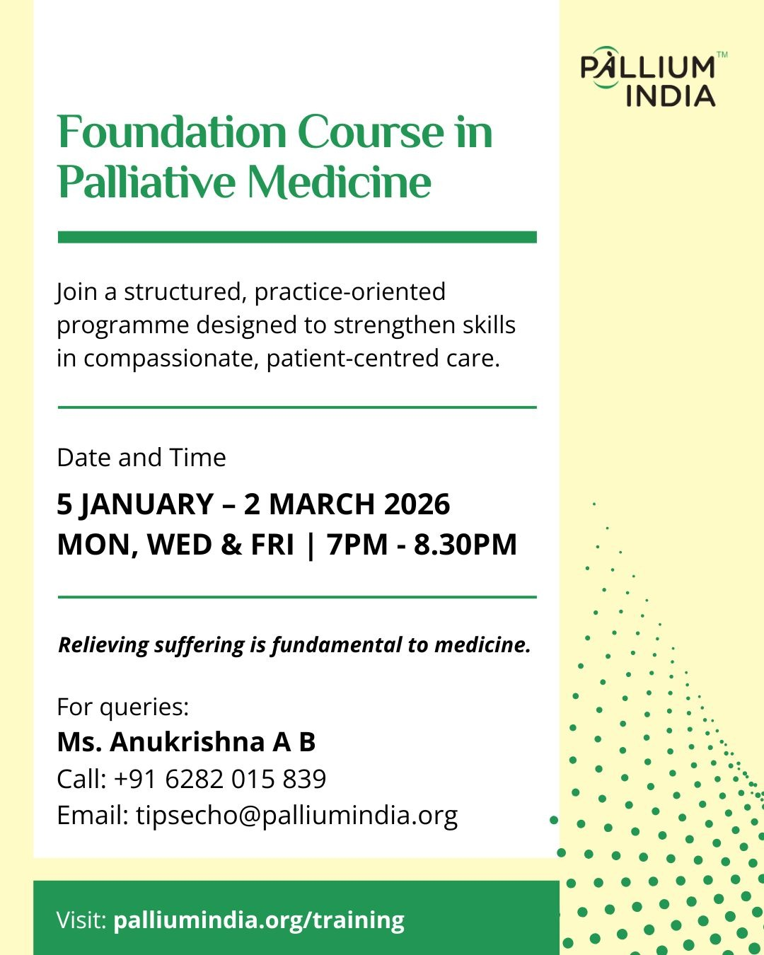 For more information on this course or for any assistance, please call us at +91 97786 05462 or write to us: tipsecho@palliumindia.org