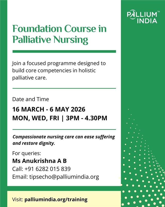 For more information on this course or for any assistance, please call +91 62820 15839 or write to us: tipsecho@palliumindia.org