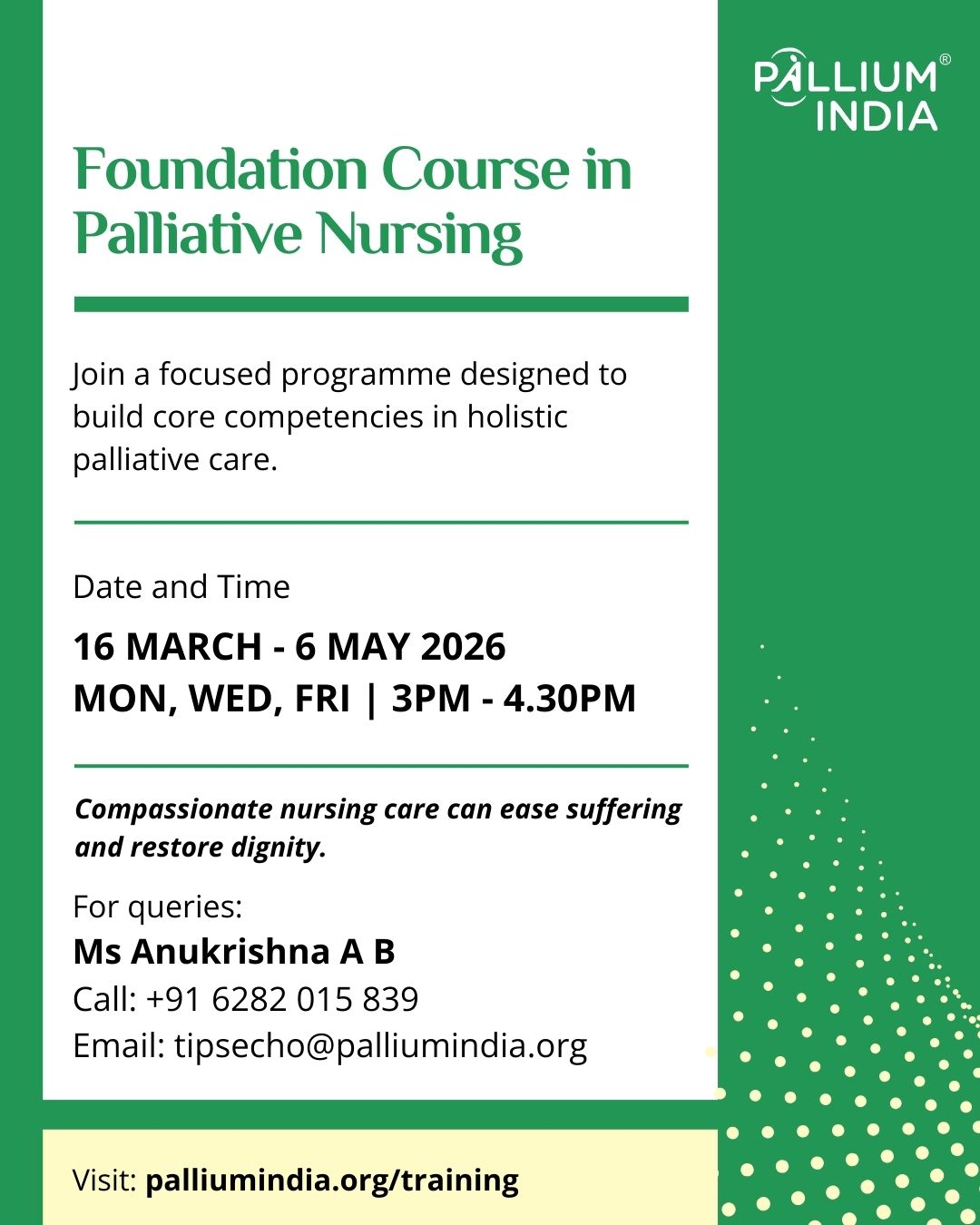 Trivandrum Institute of Palliative Sciences (TIPS), Pallium India collaborates with ECHO International (Extension for Community Healthcare Outcomes) to conduct palliative care certificate courses in India. The aim of these courses is to provide training in pain management and palliative care.