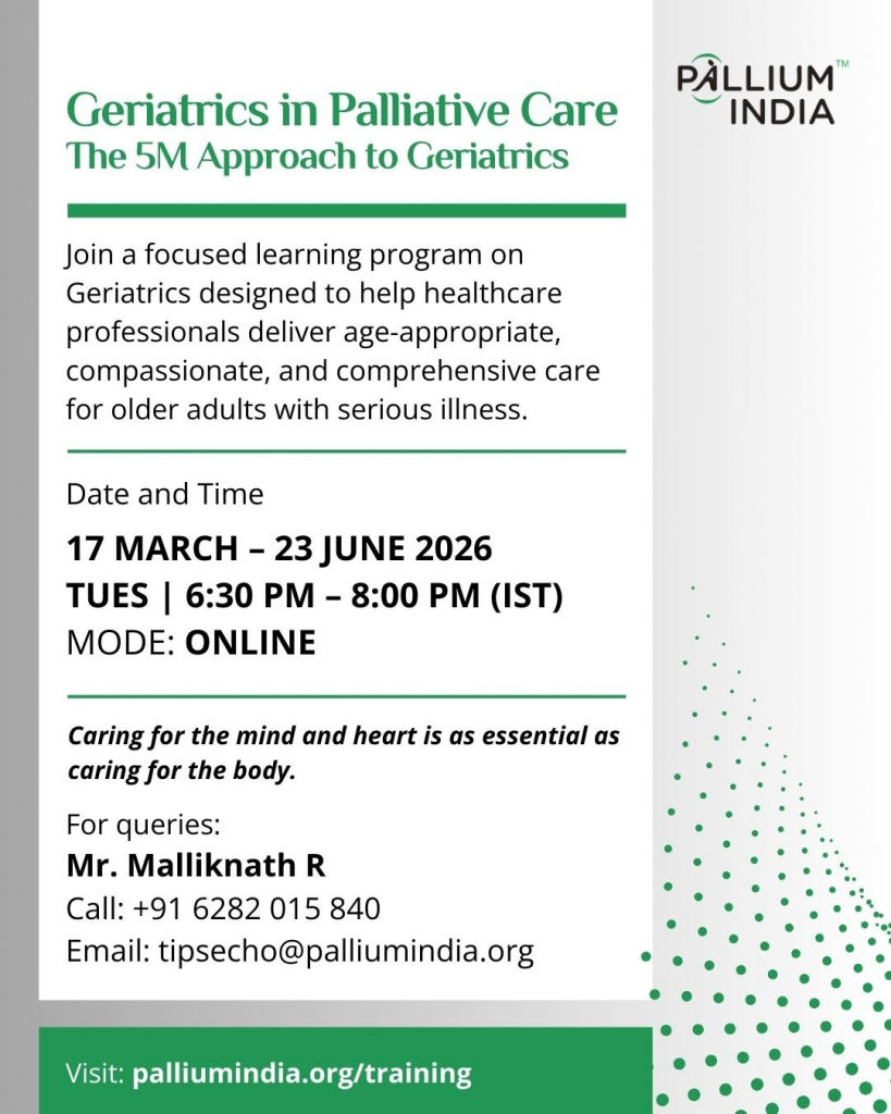 For more information on this course or for any assistance, please call us at +91 6282015840 (Mr Malliknath R) or write to us: tipsecho@palliumindia.org