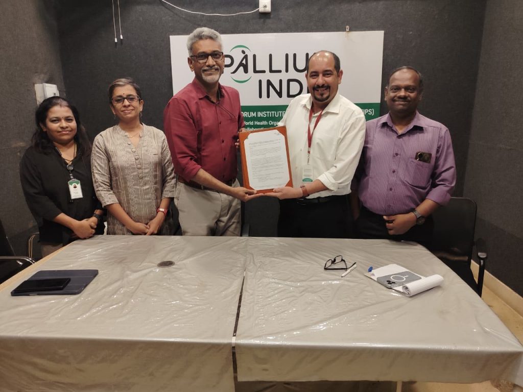 Pallium India, Trivandrum, Kerala, and the Libyan Society of Palliative Care and Prolonged Critical Care, Tripoli, Libya, signed a Memorandum of Understanding (MoU) to collaborate in areas related to palliative care and prolonged critical care.