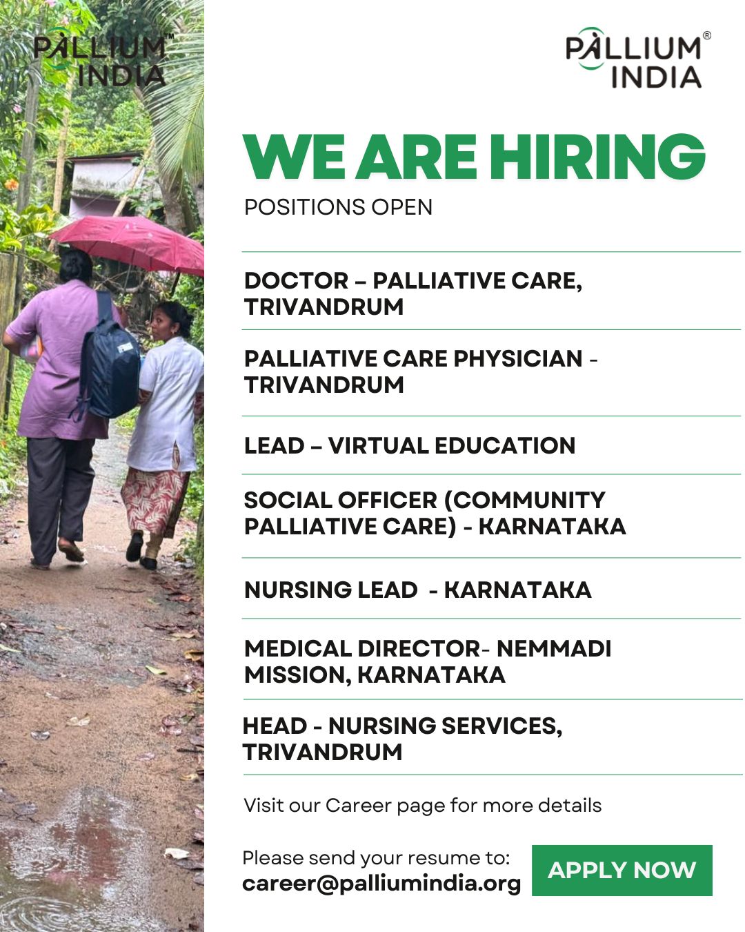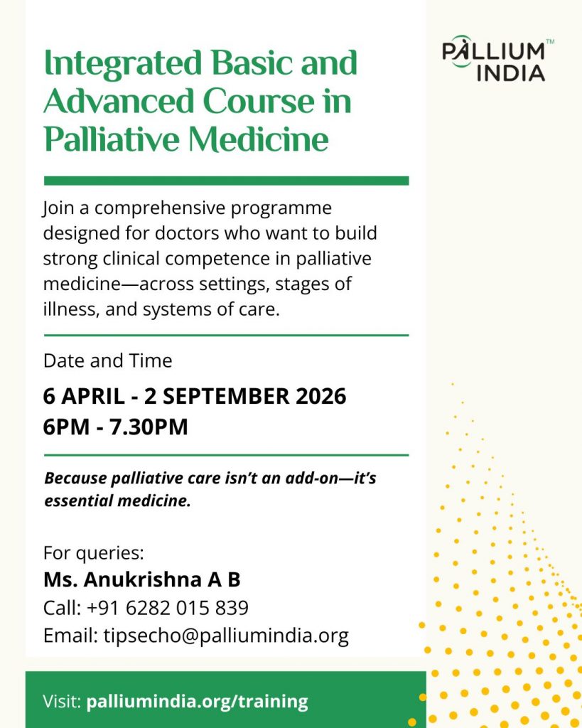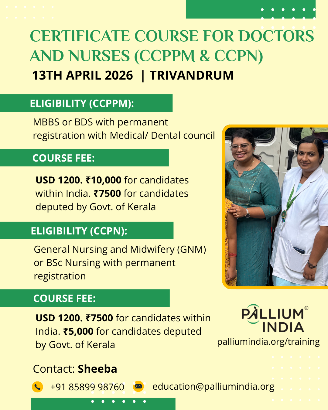Welcome to a new edition of Pallium India’s newsletter. Thank you for joining us. Here you can find updates from the palliative care world, upcoming events including training for professionals and volunteers, interesting articles, career opportunities and so on.