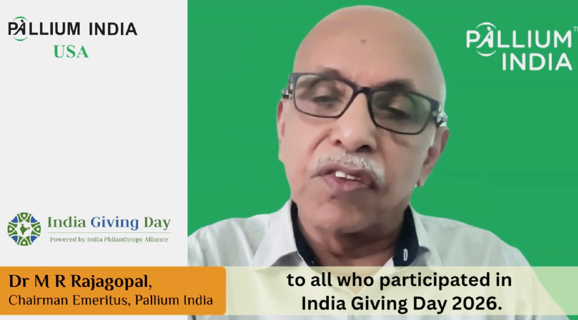 Dr. M. R. Rajagopal (Founder & Chairman Emeritus, Pallium India) extends a heartfelt message, thanking the community of supporters and presents some highlights from India Giving Day 2026.